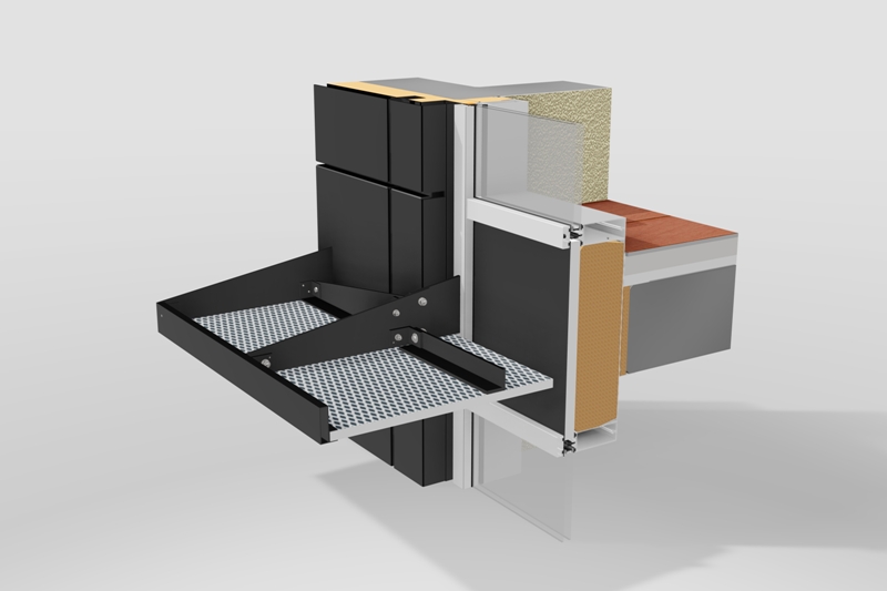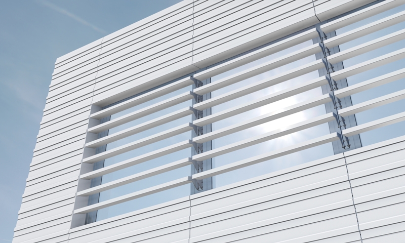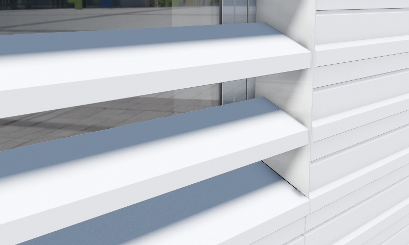 + vorgehängte hinterlüftete Fassade GIP VECO-A-3010 + auskragender starrer Sonnenschutz mit Streckgitter |