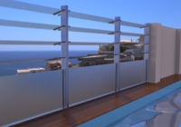 Motorisch verstellbare Glaslamellenanlage mit Glasbrüstung im Pool-Bereich |
